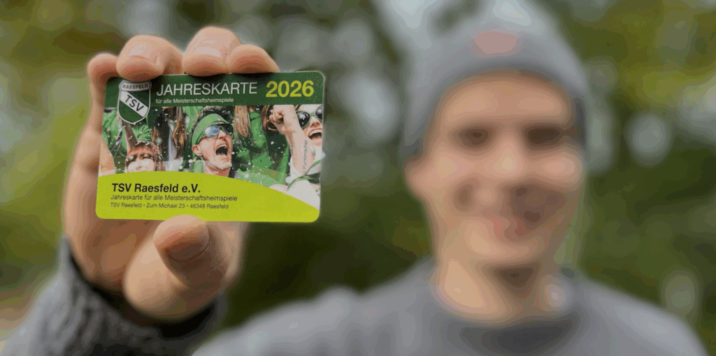 Mit der Dauerkarte 2026 vom TSV Raesfeld e.V. sicherst du dir freien Eintritt zu allen Heimspielen in der Saison 2026 unserer Seniorenmannschaften (mit Ausnahme der Pokalspiele) und zeigst zugleich dein Herz für den TSV Raesfeld. In den letzten Jahren ist die Dauerkarte immer beliebter geworden. Fast 100 Stück davon werden jährlich gekauft, verschenkt oder gestiftet. Und das hat gute Gründe. Hier sind einige.