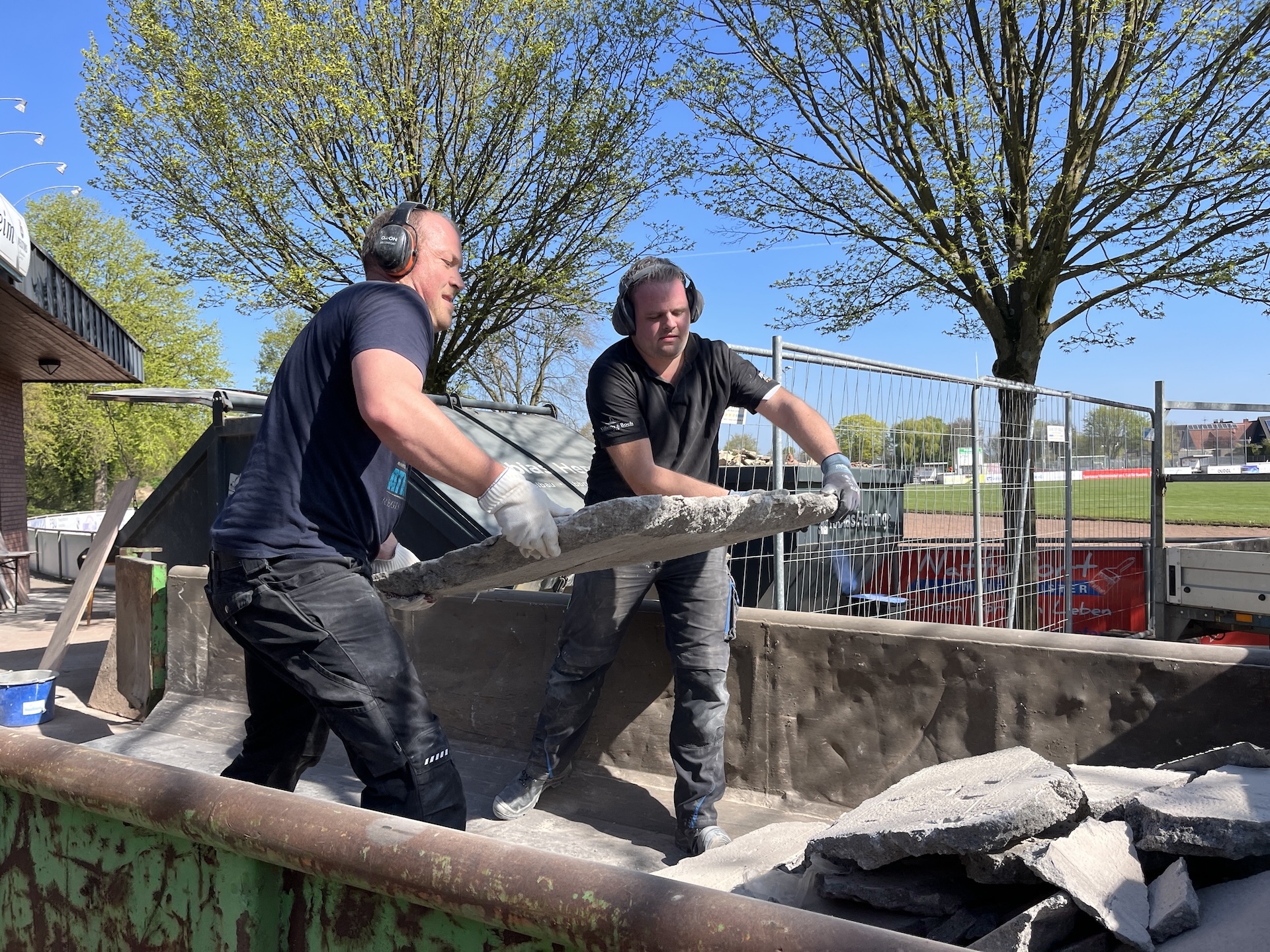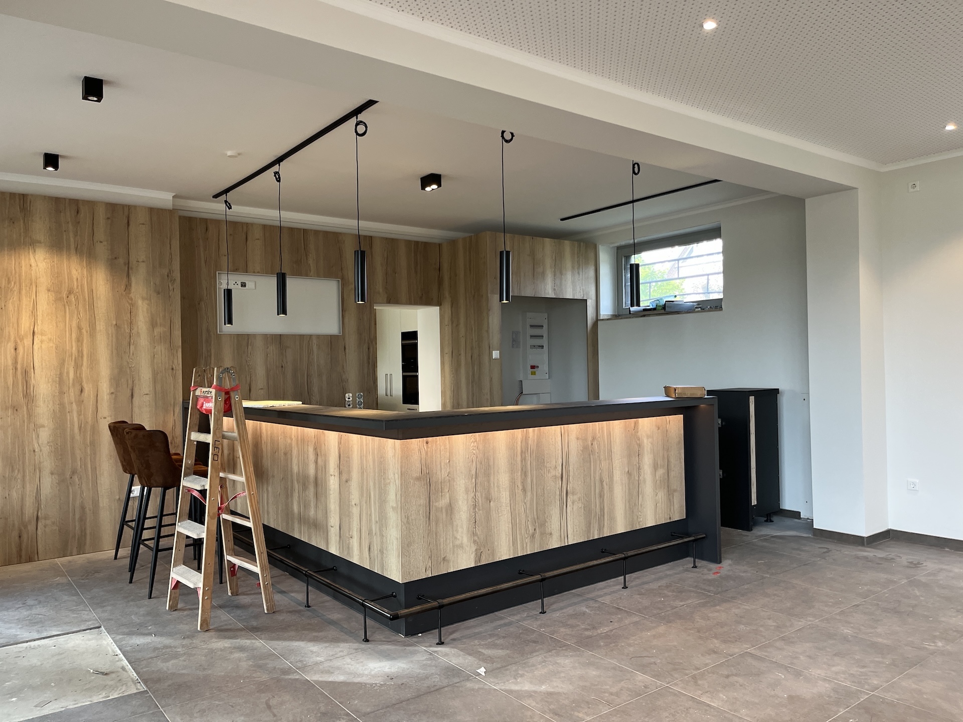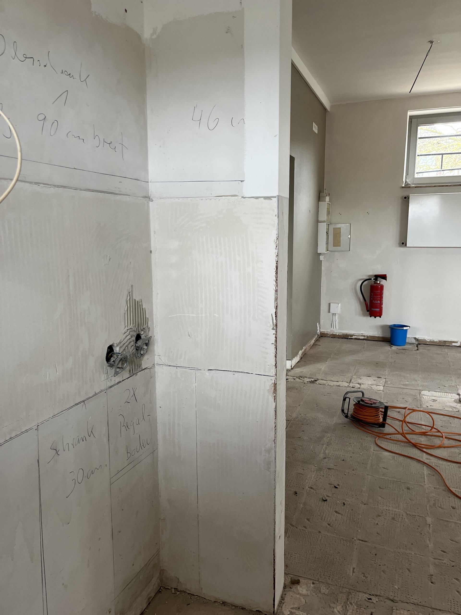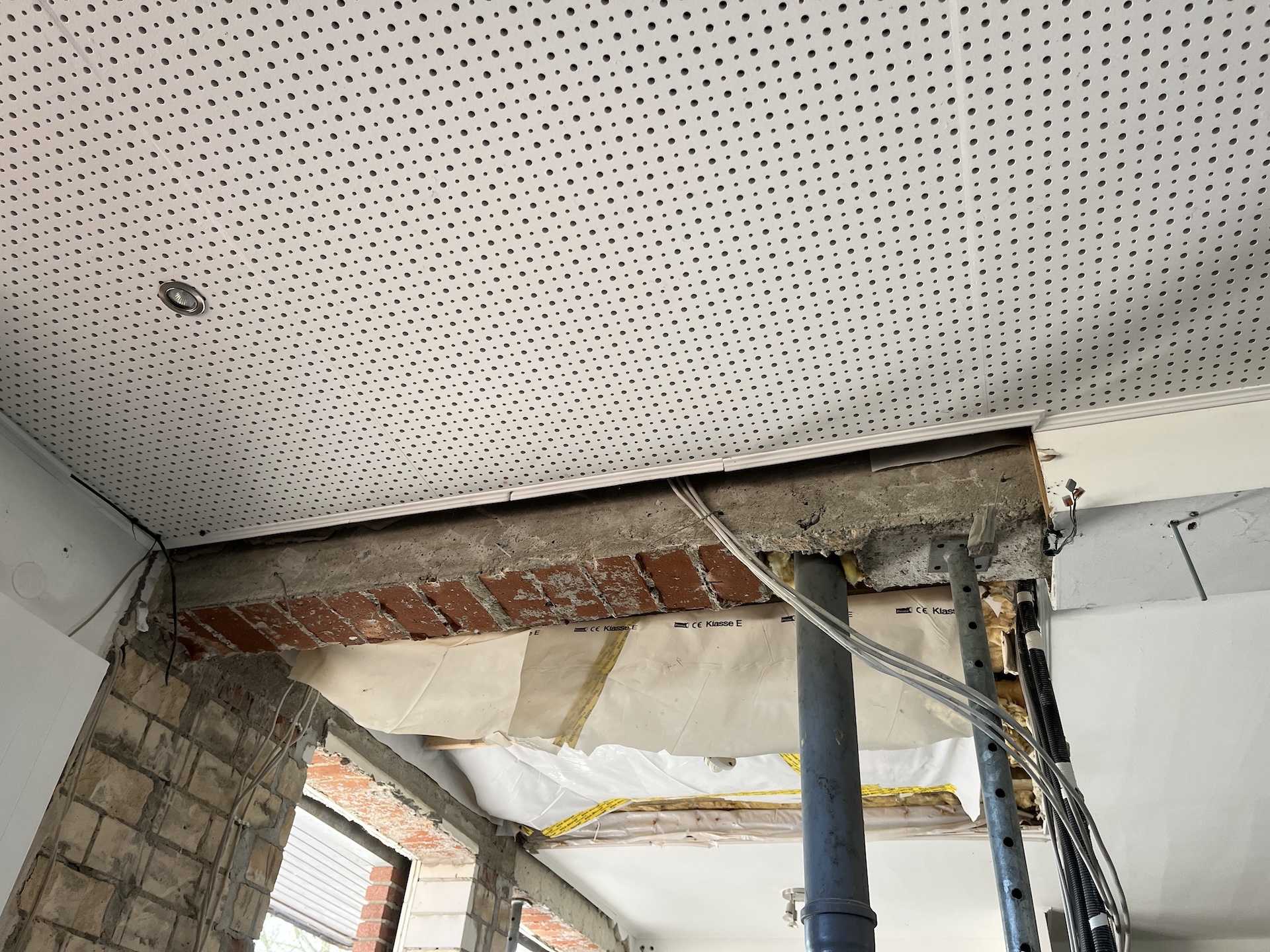 Was Ende März 2025 begann, sollte Ende August fertig sein. Einige unvorhersehbare Ereignisse sorgten allerdings dafür, dass das Vereinsheim verspätet am 02.11. offiziell eröffnet werden konnte. Die Planung wurde vom Architekten Mischo aus Borken übernommen, die Bauleitung und Umbau nahm der Verein selbst in die Hand. War anfangs die energetische Modernisierung der Fenster sowie die Überarbeitung des Eingangsbereiches geplant, entpuppte sich letzteres relativ früh als Überraschung: bei der Entfernung des Windfangs zur Vergrößerung der nutzbaren Fläche, entpuppte sich ein als selbsttragend verzeichneter Unterzug zur Aussteifung des Gebäudes als nicht selbsttragend. Er war für die Verlegung des Fallrohres der Dachentwässerung einfach durchbohrt worden. Es folgten Risse im Estrich, eine fehlende Dampfsperre, eine zwingend zu ersetzende Elektro-Unterverteilung, fehlende Wasserleitungen u.v.m.